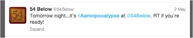 I was excited that we booked Aaron Tveit. Little did I know that the minute we would announce he was coming to 54, the news would explode on social media and lead to thousands of fans booking plane tickets to NYC just for him. The term Aaronpocalypse happened when his show went on sale and sold out his entire run in 6 minutes. After thousands of upset Facebook posts, tweets, and Tumblr posts we just had to add more shows. The two shows we added sold out in just a few minutes as well. Crazy.